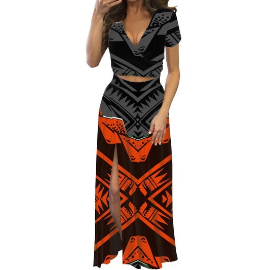 Robe fleurie de danse du feu polynĂ©sienne Ă imprimĂ© Ă la demande, ensemble de robe longue Ă manches courtes pour femmes et filles, mode de crĂ©ateur, fĂȘte, voyage